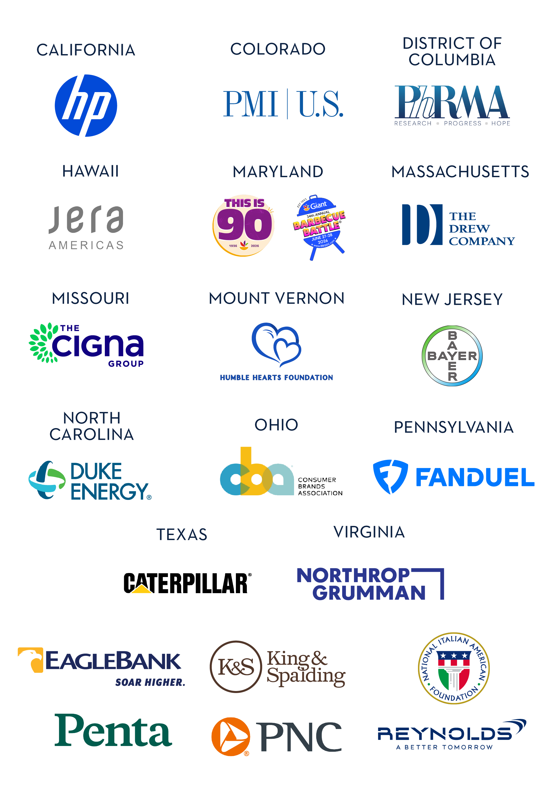 2025: Josh Harris, Managing Partner, Washington Commanders, Rosie Rios, Chair America250 U.S. Congressional Commission, Maryland Governor Wes Moore and Maryland First Lady Dawn Moore, and Virginia Governor Glenn Youngkin and First Lady Suzanne S. Youngkin
