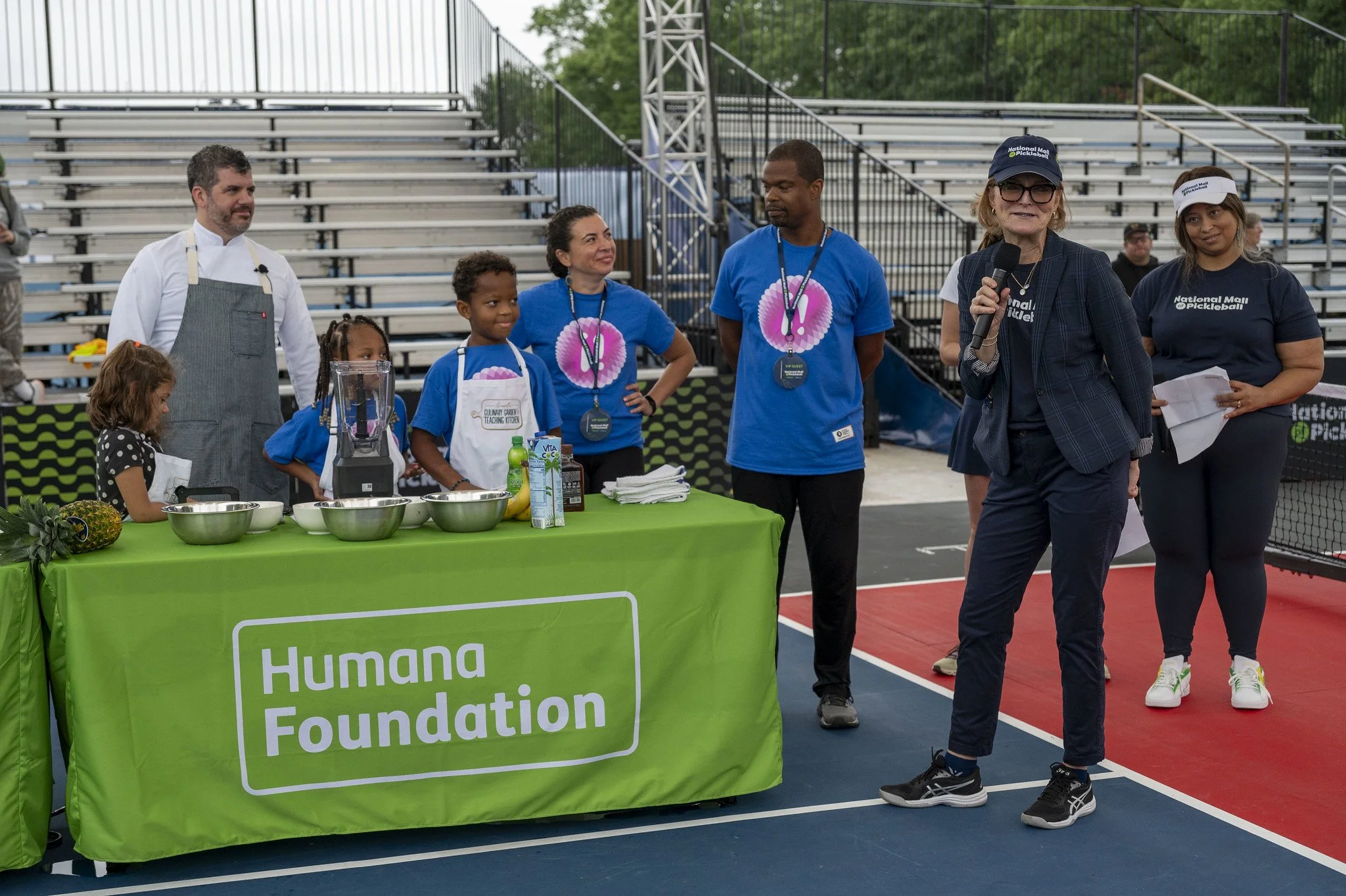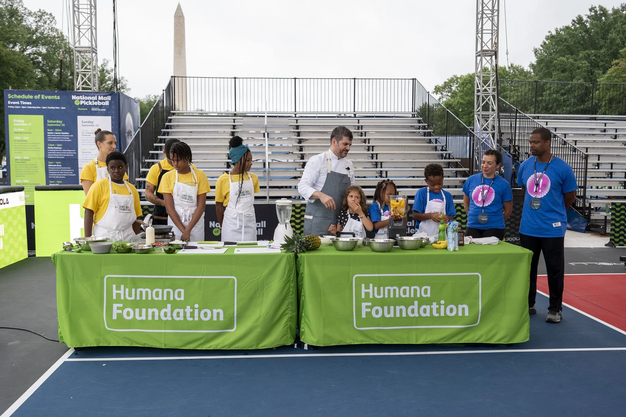 Day one of National Mall of Pickleball celebrated the unique way that pickleball connects players across all generations on the National Mall, the iconic space for all. The highlight of the day was a cooking "In the Kitchen" segment featuring Humana Foundation CEO Tiffany Benjamin, James Beard Award winning chef Carlos Rabas and Michelin-starred chef Adam Howard, D.C.-area students from D.C. Bilingual Public Charter School and Baltimore Montessori, and Emeril's Culinary Garden & Teaching Kitchen. Check out the recipes for Gazpacho and Yummy Wake Up Smoothies! The stars of the D.C. Pickleball pro team also showed off their skills on center court: Dekel Bar, James Ignatowich, Vivian Glozman and Rachel Rohrabacher.