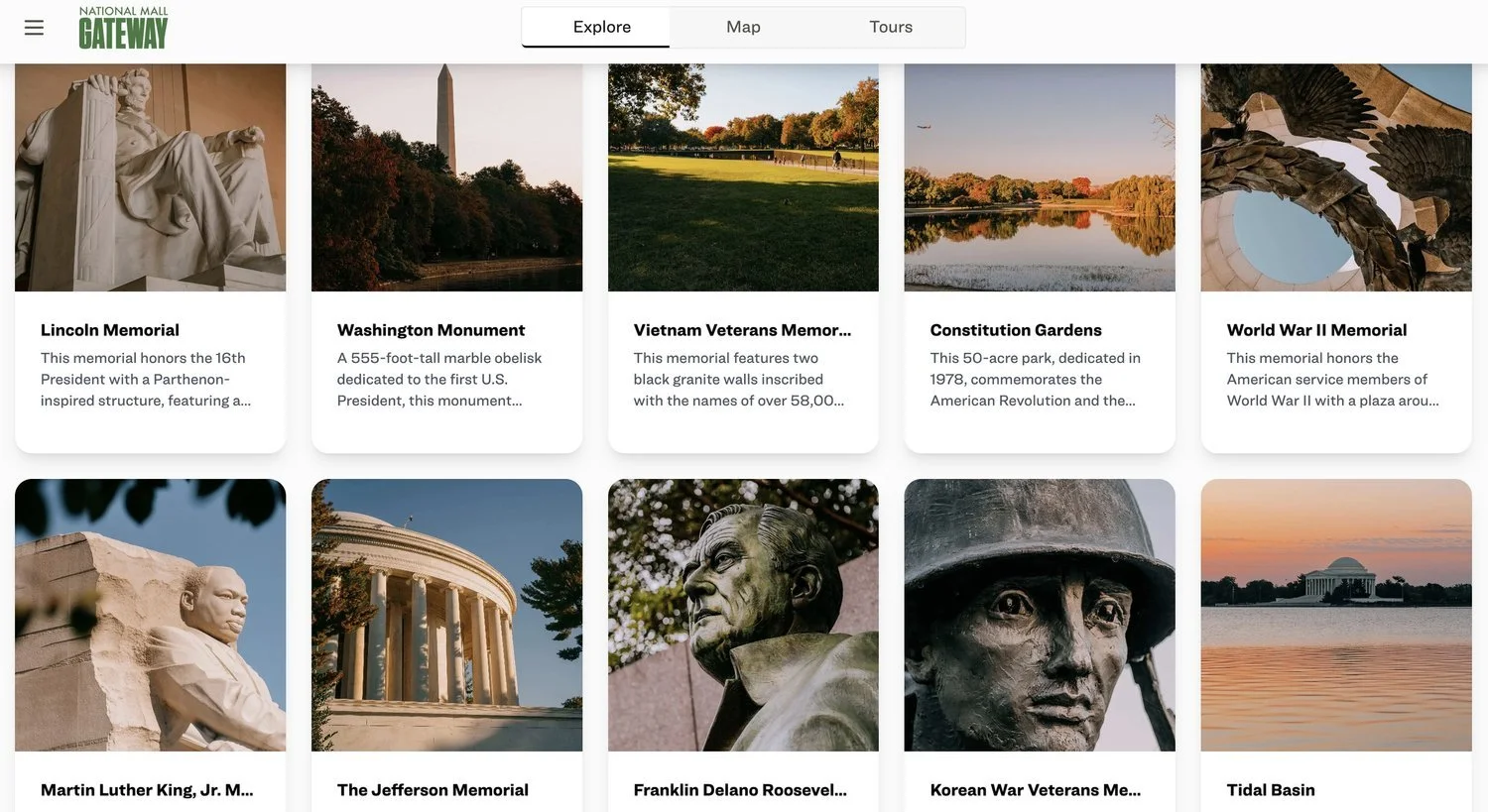 “The Trust for the National Mall, the nonprofit that raises money to help maintain “American's front yard,” in September launched the National Mall Gateway featuring photos, educational videos and 360-degree video tours.