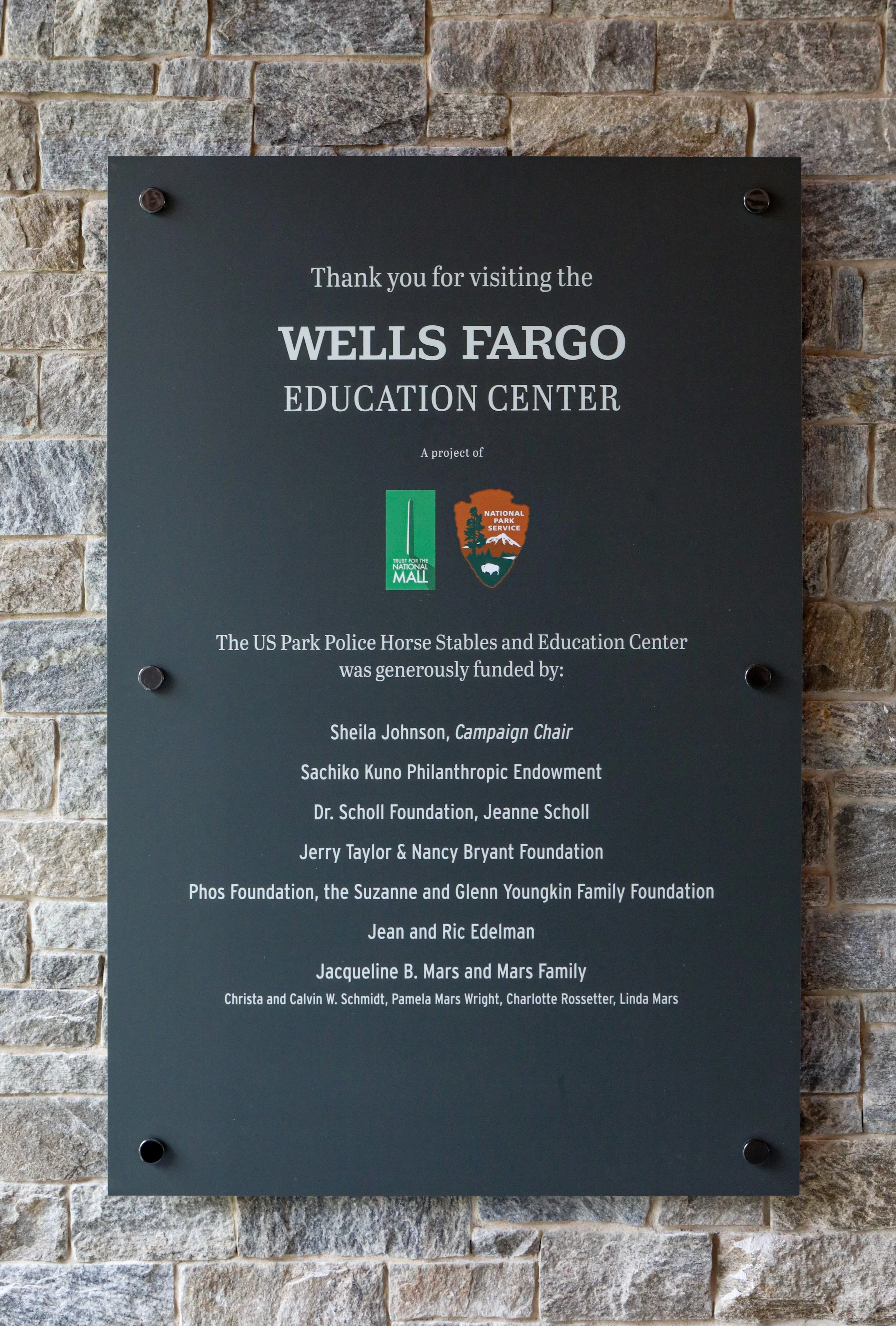 On June 14, 2023, the Trust for the National Mall and the National Park Service unveiled the new U.S. Park Park Police Horse Stables and Wells Fargo Education Center on the National Mall. The Trust led this transformational project to replace and upgrade the original horse stables built in the 1970’s and to create the new Education Center in partnership with the National Park Service and the United States Park Police Mounted Unit. The complete facility was designed and built by the Trust for the National Mall and was supported entirely by private philanthropy, thanks to its generous supporters including Wells Fargo and Campaign Chair Sheila Johnson.
